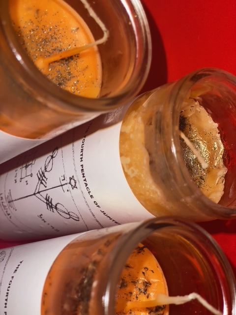 This 7 day candle has been ritualized and consecrated prepared through our ceremonial rite to empower and activate the 4th Pentacle of Jupiter it carries. This is a very powerful sigil that through the ceremonial rites is activated to bring the one who lights wealth, abundance and success it is a talisman that is used in the practice drawn down to summon spirits and the Angel Bariel and Adoniel to assist in acquiring not only luck but opulence and wealth in all its forms. Before lighting one recites Psalm 112/113 to activate the sigil and candle to the lighter "YOU"